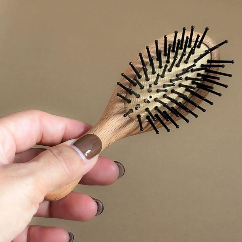 森林再生力の高い天然ブナ材と、柔らかく弾力のある天然ゴムクッションを組み合わせた、サステナブルなヘアブラシです。