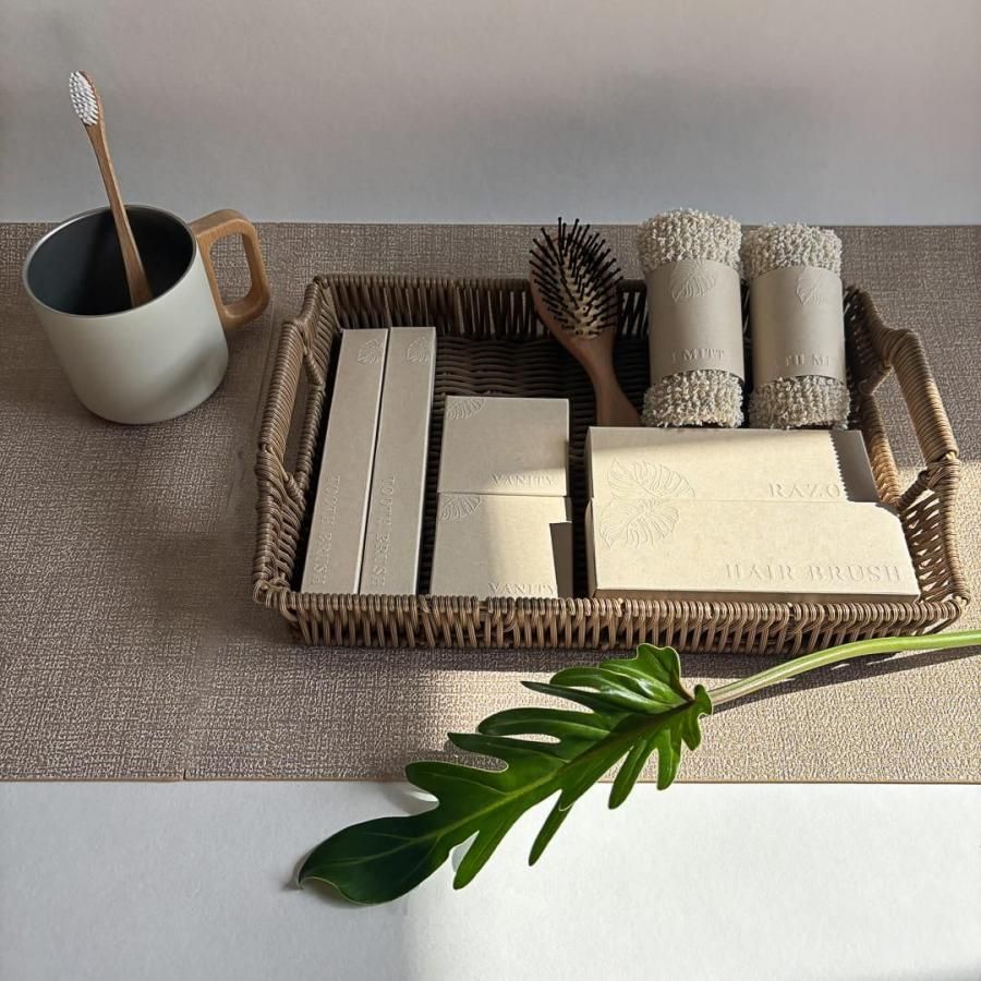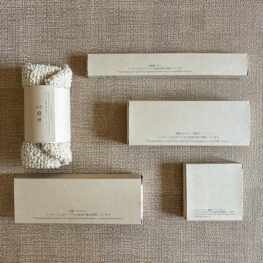 パッケージにはサトウキビ由来のバガス紙箱を採用し、製品全体でプラスチックの使用を最小限に抑えています。